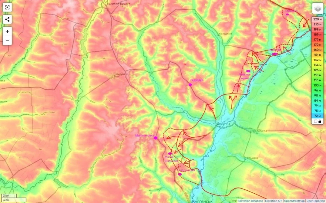 Вместе с этим он акцентировал внимание на том, что противника без особых усилий сдал нам западный берег реки Оскол, что севернее Купянска, где накануне российские войска без боёв заняли населённый пункт Строевка.